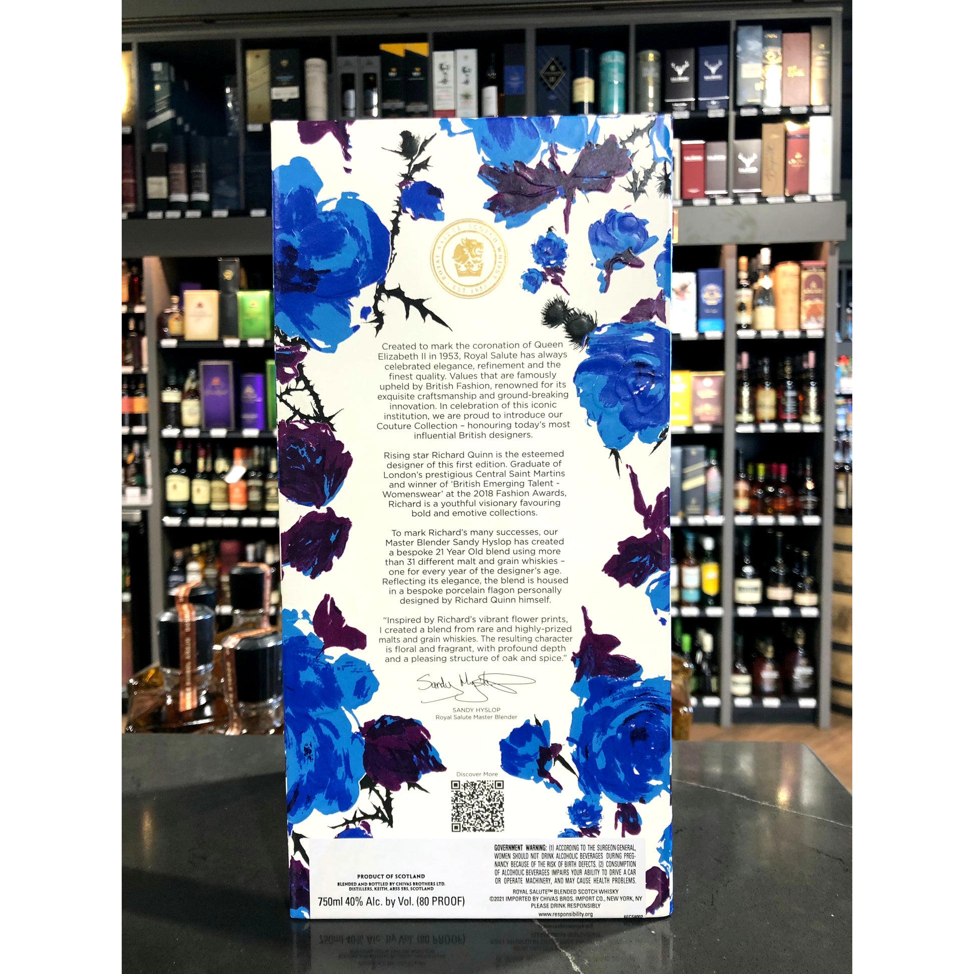 Paying tribute to the vibrant designs of Richard Quinn, our Master Blender Sandy Hyslop has created a bespoke, limited edition whisky, using 31 fine malts – one for each year of the designer’s age at the time of the blend’s release, resulting in a floral, fragrant blend.